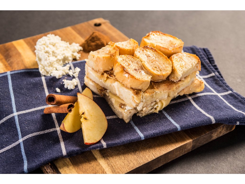 Žemlovka s jablky a skořicí: veka (25 %) (pšeničná mouka, voda, droždí, olej rostlinný, sůl, cukr, sladová mouka), jablka (22 %), mléko, tvaroh, cukr řepný, vejce, máslo, sůl, skořice (0,01 %).