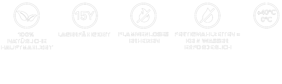 Der gesamte Prozess orientiert sich an traditionellen Kochmethoden, angepasst an eine höhere Produktionskapazität. Die frisch zubereiteten Mahlzeiten werden hermetisch versiegelt und schonend in einem Druckautoklaven sterilisiert. So können wir vollständig auf Konservierungsstoffe verzichten – und dennoch bleibt das Essen bis zu 15 Jahre haltbar, ganz ohne Kühlung oder spezielle Lagerbedingungen. Dabei bleiben Geschmack, Nährwert und Sicherheit vollständig erhalten.